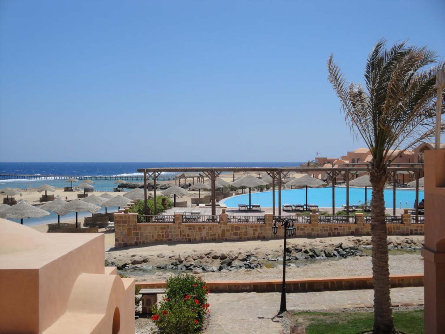 Blick auf Pool und Strand aus Zimmer Nr. 2130