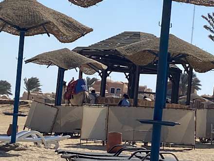 Die Strandbar auch manchmal mit Besuch von Kamel und Co.