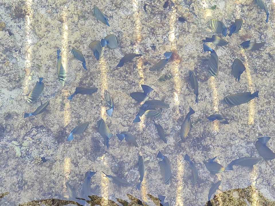 Fischschwarm vom Steg aus beobachtet