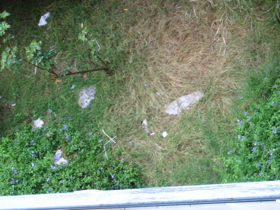 Das Wischwasser wird mit den Wischtüchern beim Balkon rausgeschüttet und die bleiben liegen, sind zum Teil bereits von Gras durch- bzw. überwachsen.