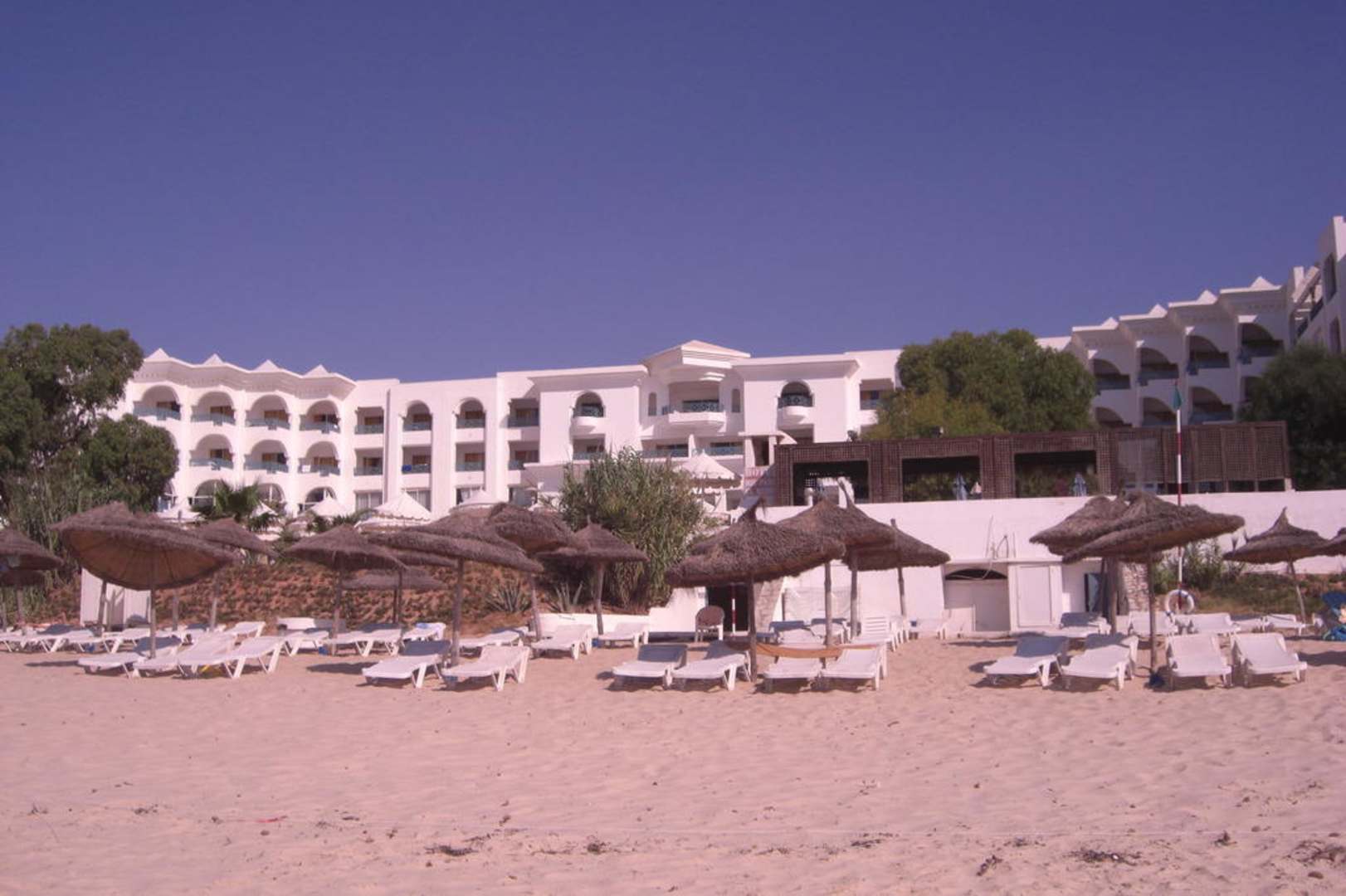 Blick vom Strand auf Hotel