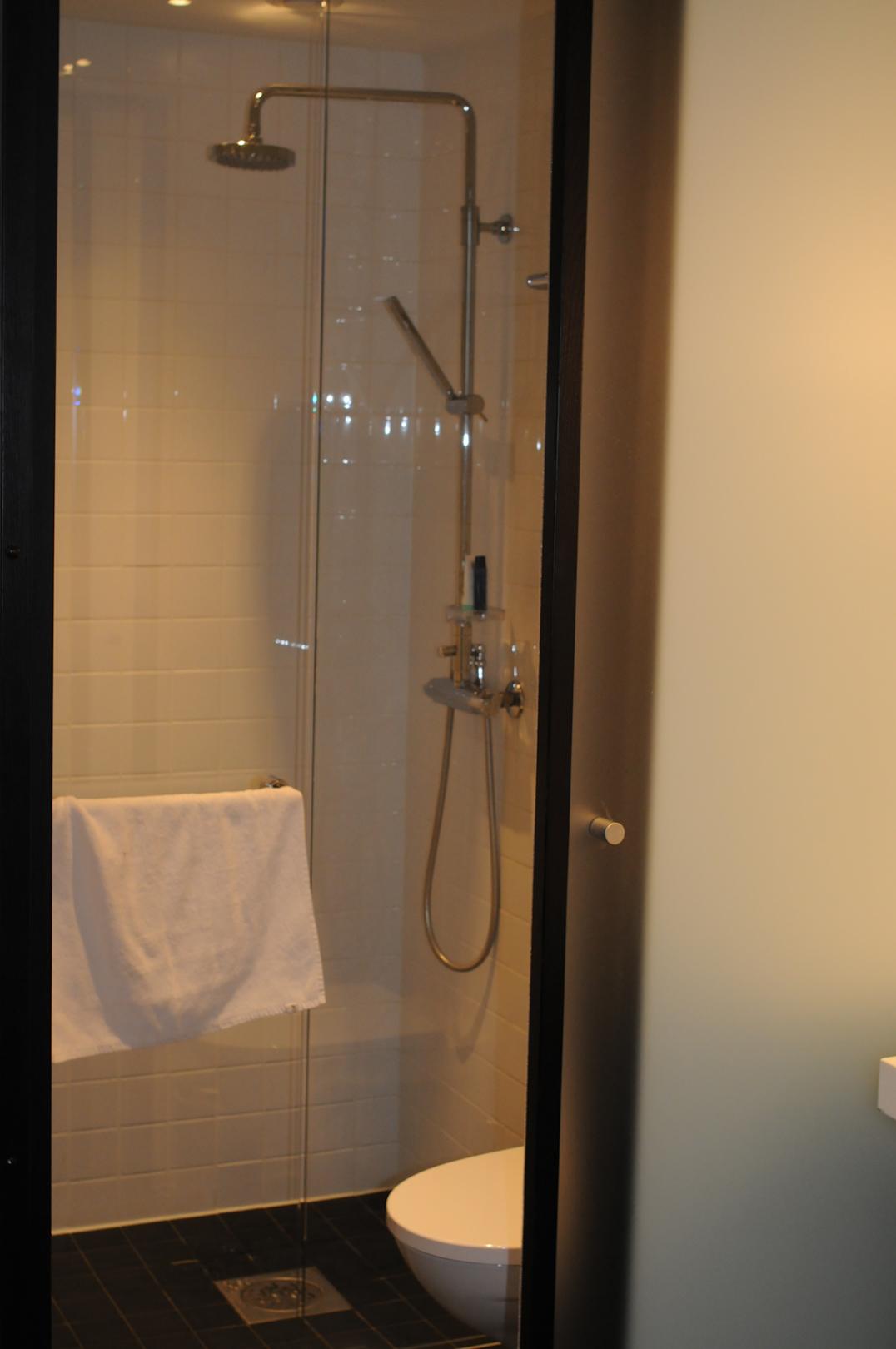 Dusche und WC getrennt vom Zimmer mit einer Schiebetür.