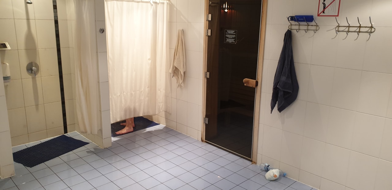 Sauna im Umkleidebereich (je eine Saune bei Männern und eine bei Frauen)