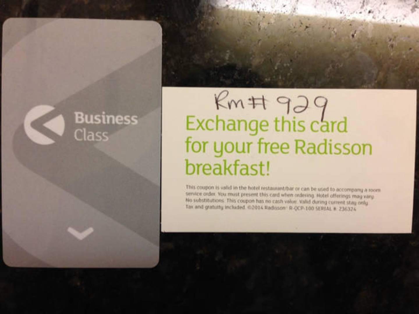 Room key and free breakfast