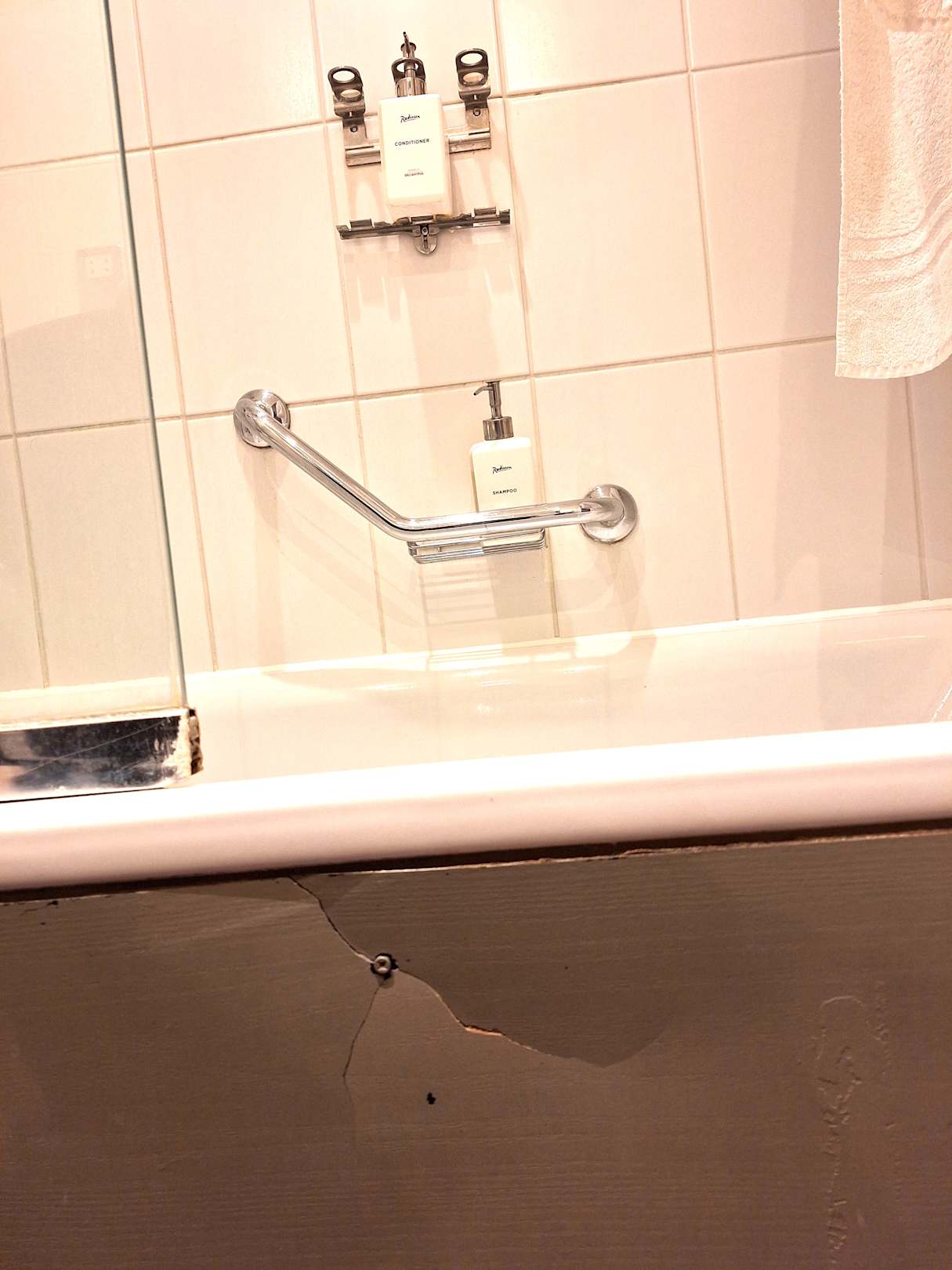 Zi. 4218, defekte Badewannenverkleidung, Seifenspender nicht funktioniert