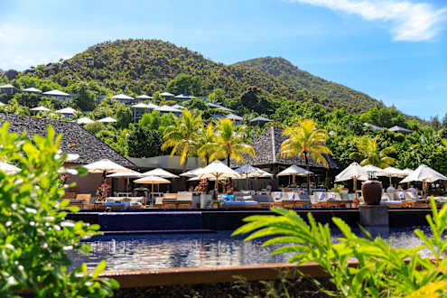 Raffles Seychelles eingebettet in einem tropischen Garten
