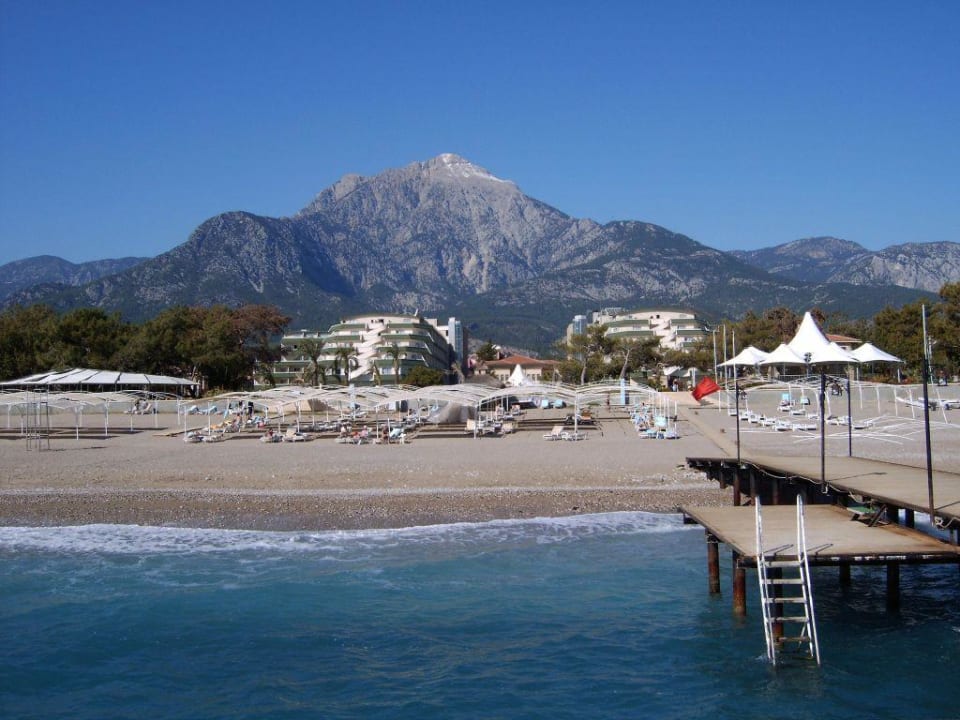 Blick auf das HotelBlick vom Badesteg auf Strand und Hotel