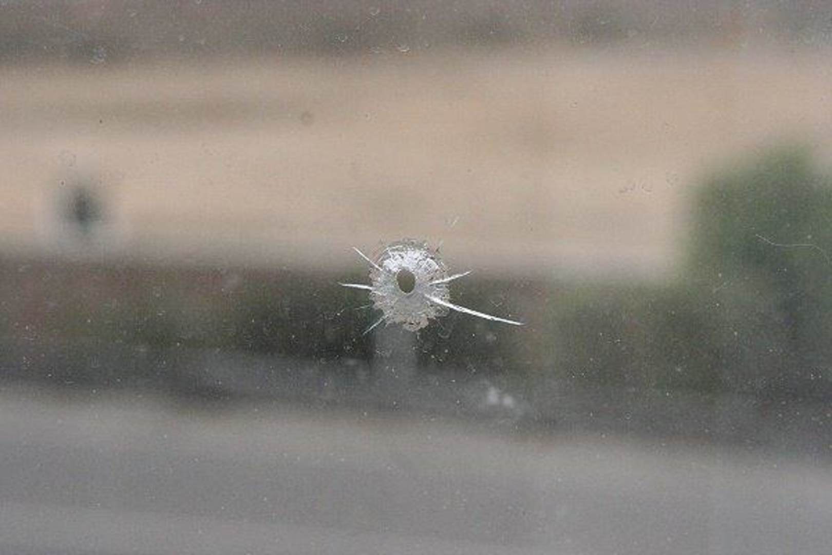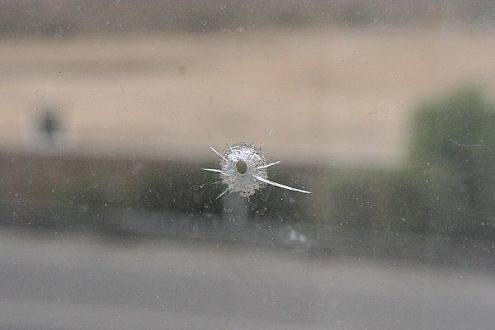 Einschußloch im Fenster - der Schuss kam eindeutig von aussen.....