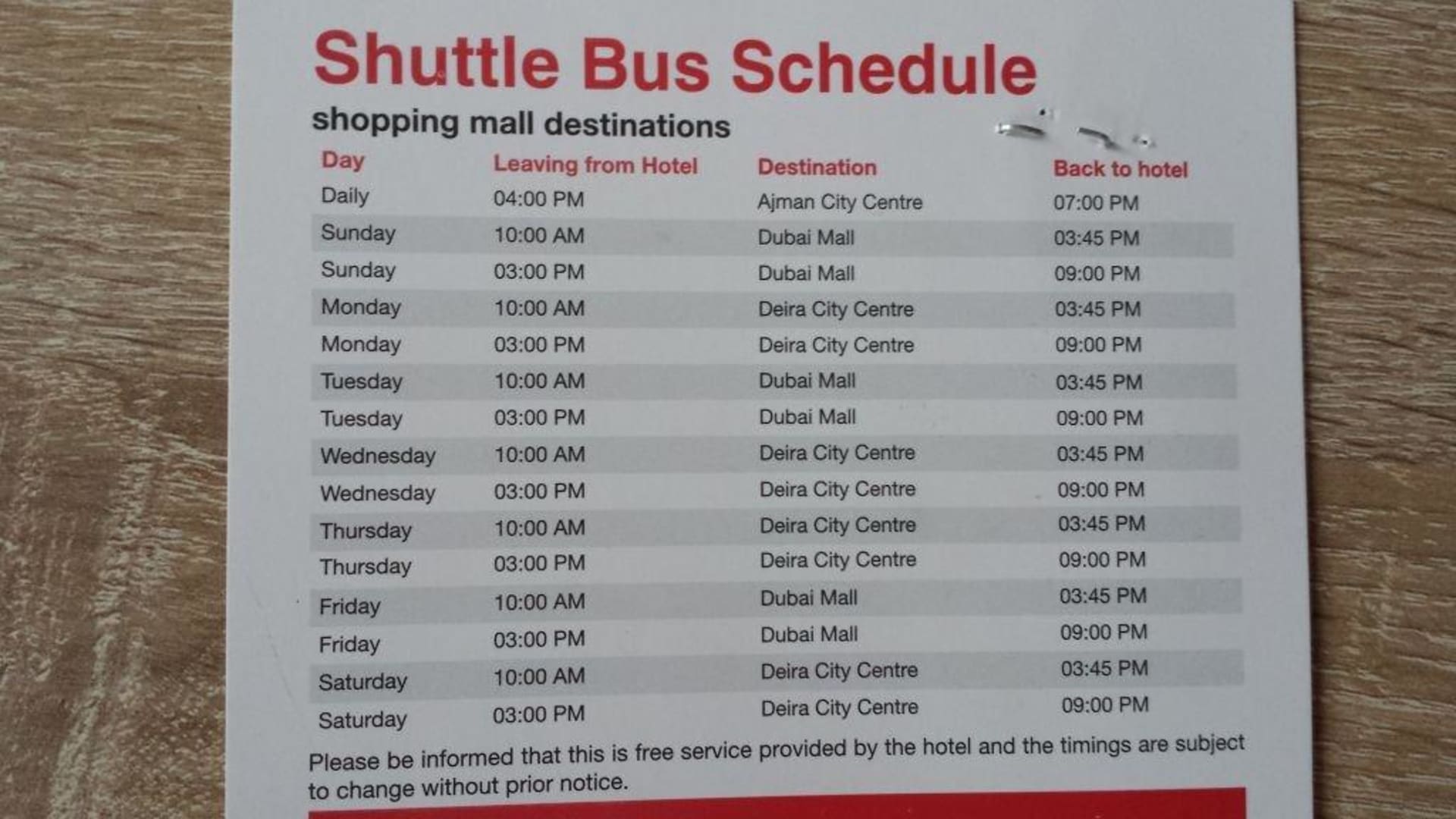 Shuttle Zeiten nach Dubai