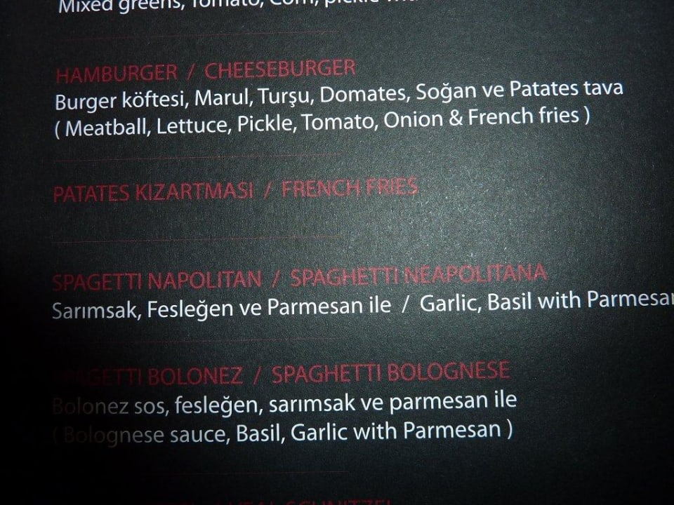 Zimmerservice Speisekarte