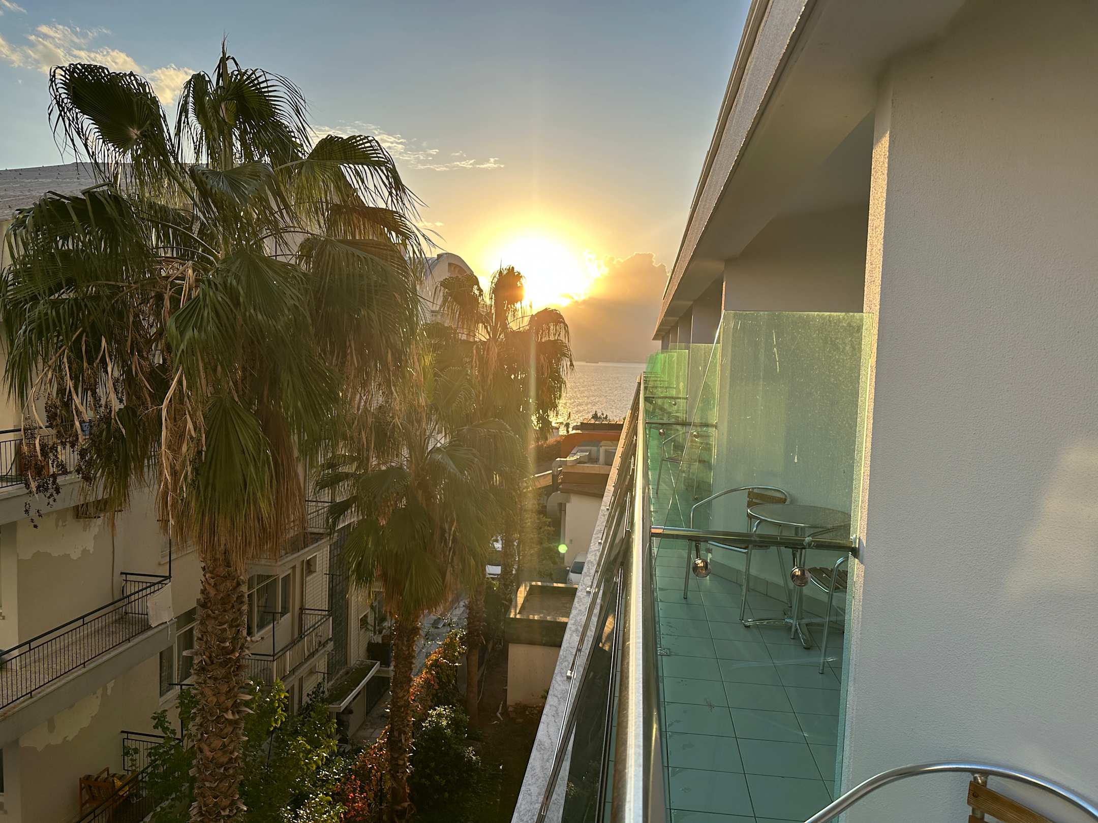 Ausblick vom Zimmer mit Balkon, seitlicher Meerblick