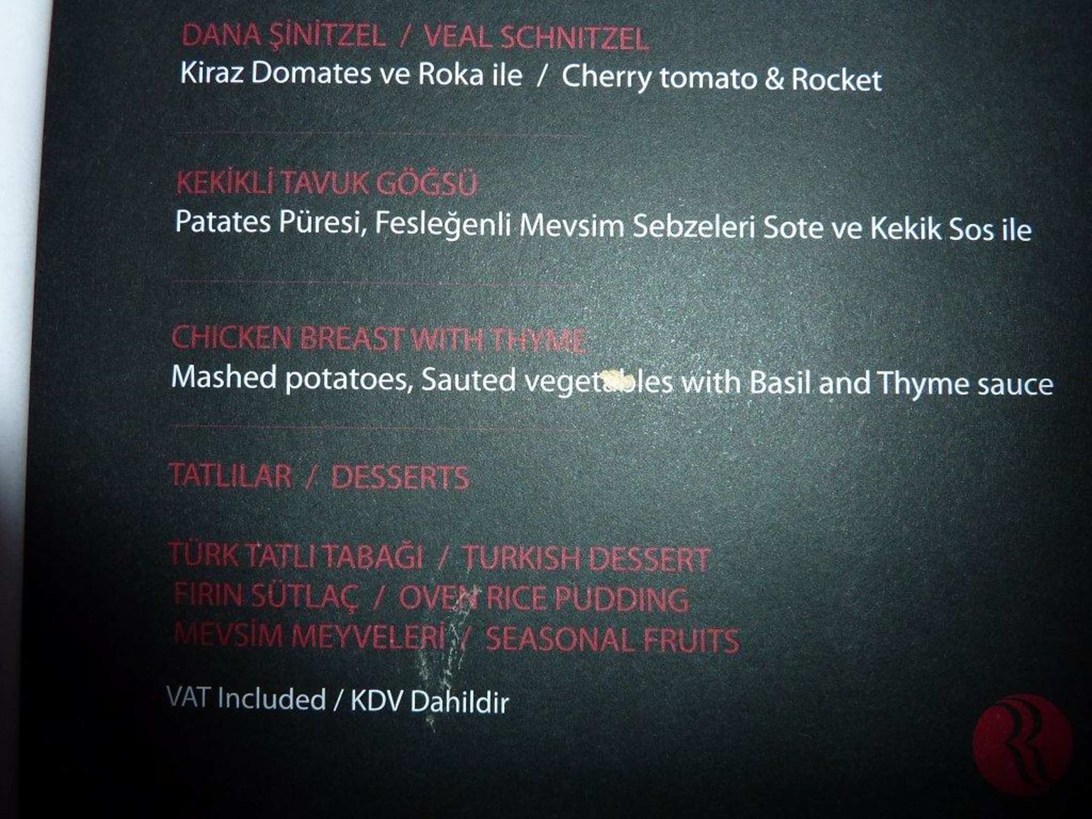 Zimmerservice Speisekarte