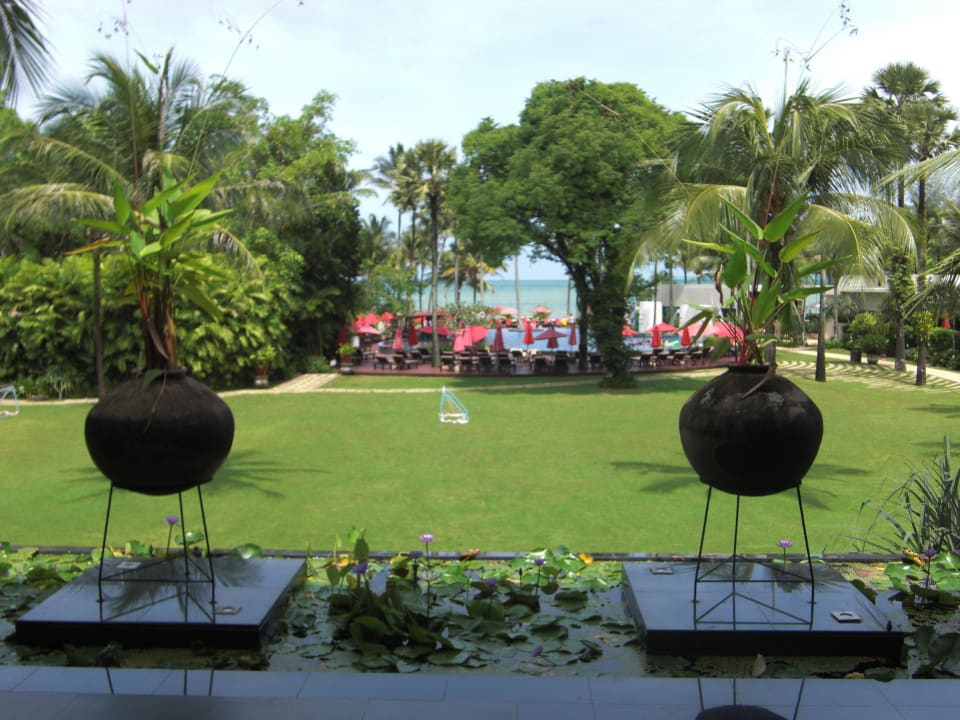 Blick aus der Rezeption zum Pool