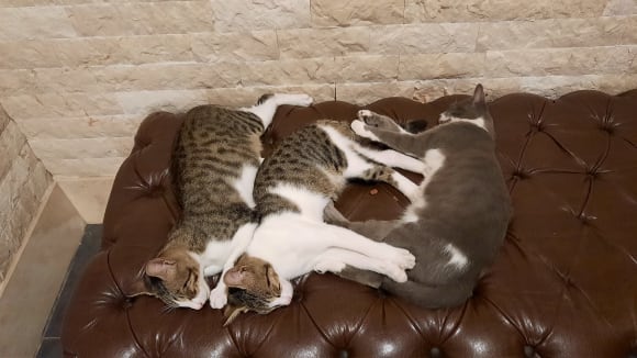 Hauskatzen vor dem Aufzug im Hotel