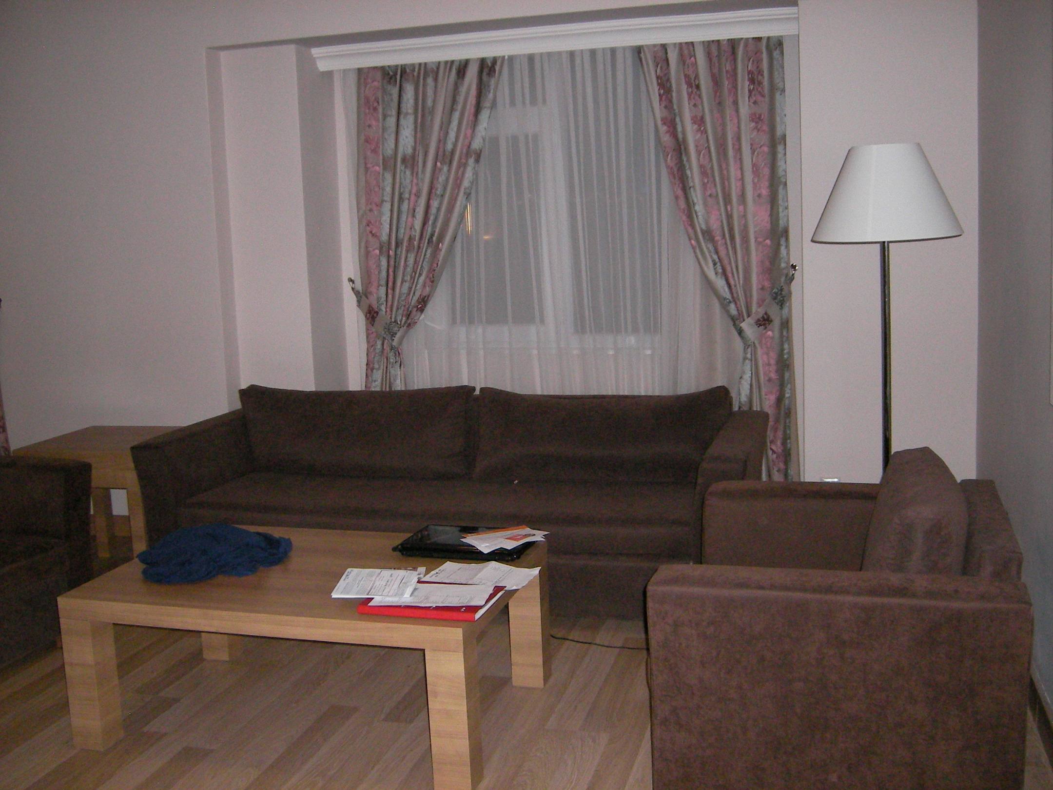 Couch + 2 Sessel, Fenster zur Straße. Zimmer hat Zugang zum Balkon!