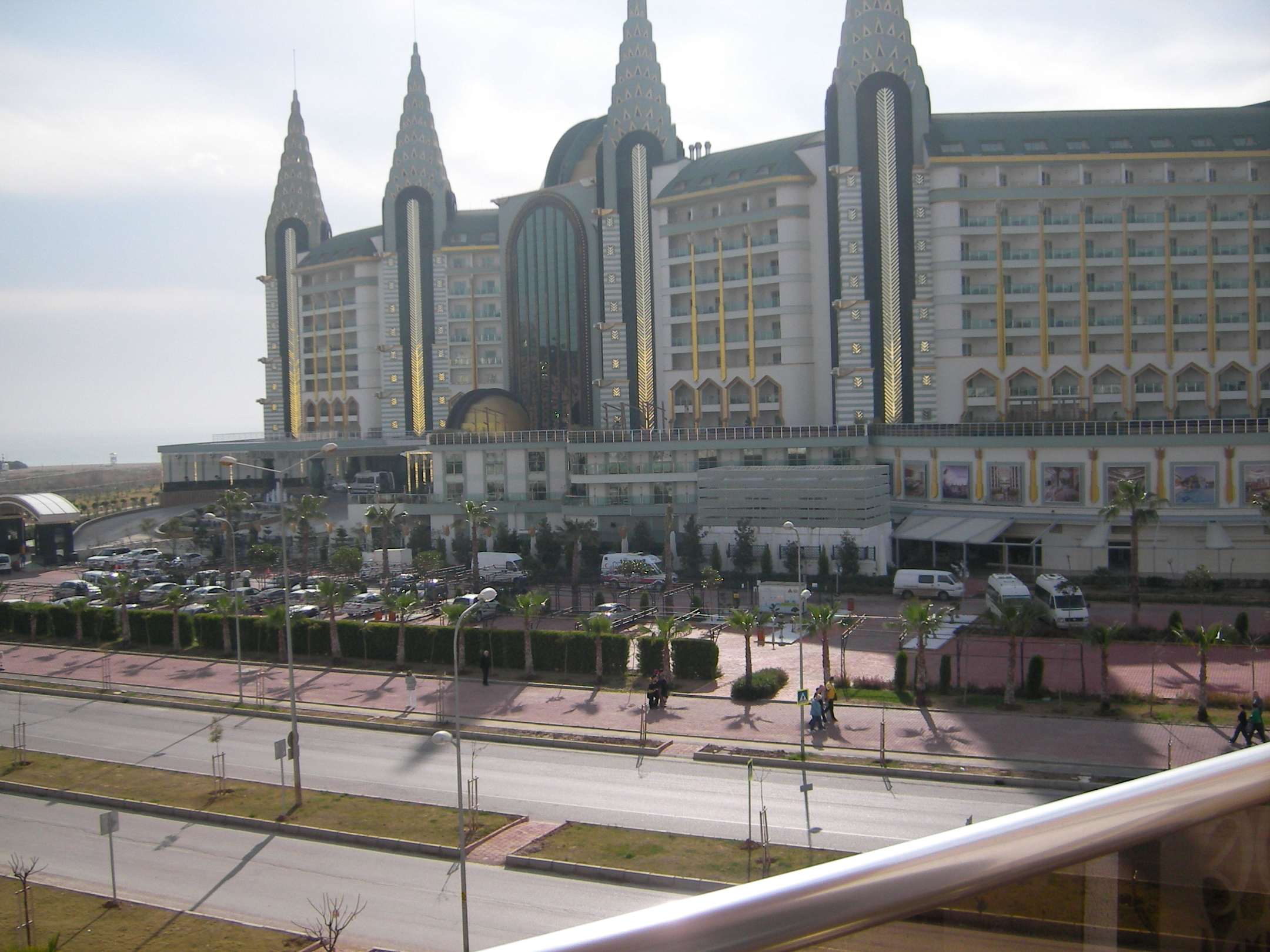 Anderes Hotel gegenüberAusblick vom Gebäude 1, Etage 4. Die Hauptstraße unten, gegenüber ein Hotel der Delphin-Gruppe.