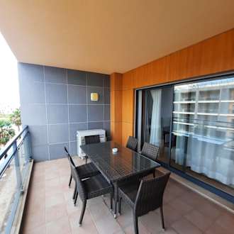 Geräumiger Balkon mit Sitzmöglichkeit für 6 Personen.