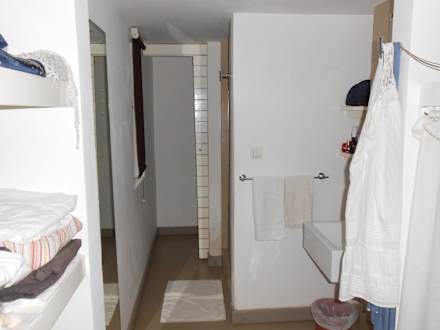 Weg zum Waschbecken, Dusche und WC