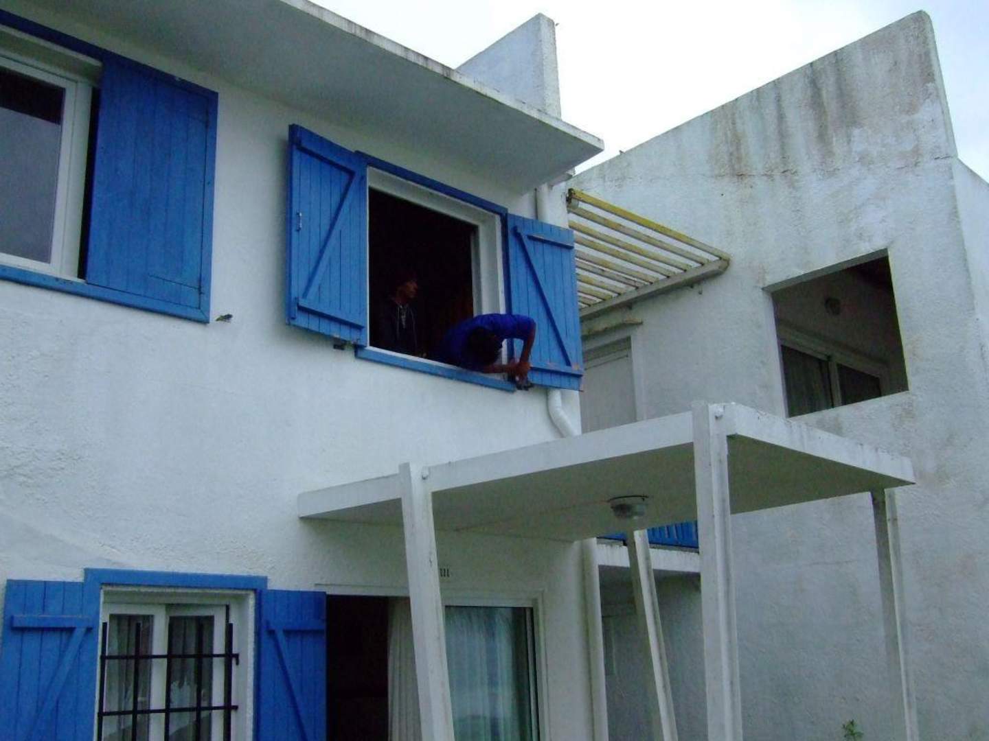 Mitarbeiter des Hotels versuchen die Fenster zu sichern.