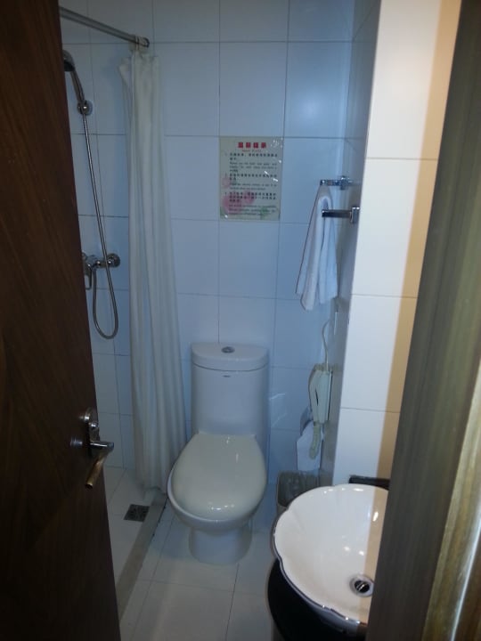 Blick ins BadWie beschrieben: Westliches Klo, das Waschbecken daß eher einer Waschschüssel entsprach und die Dusche links.