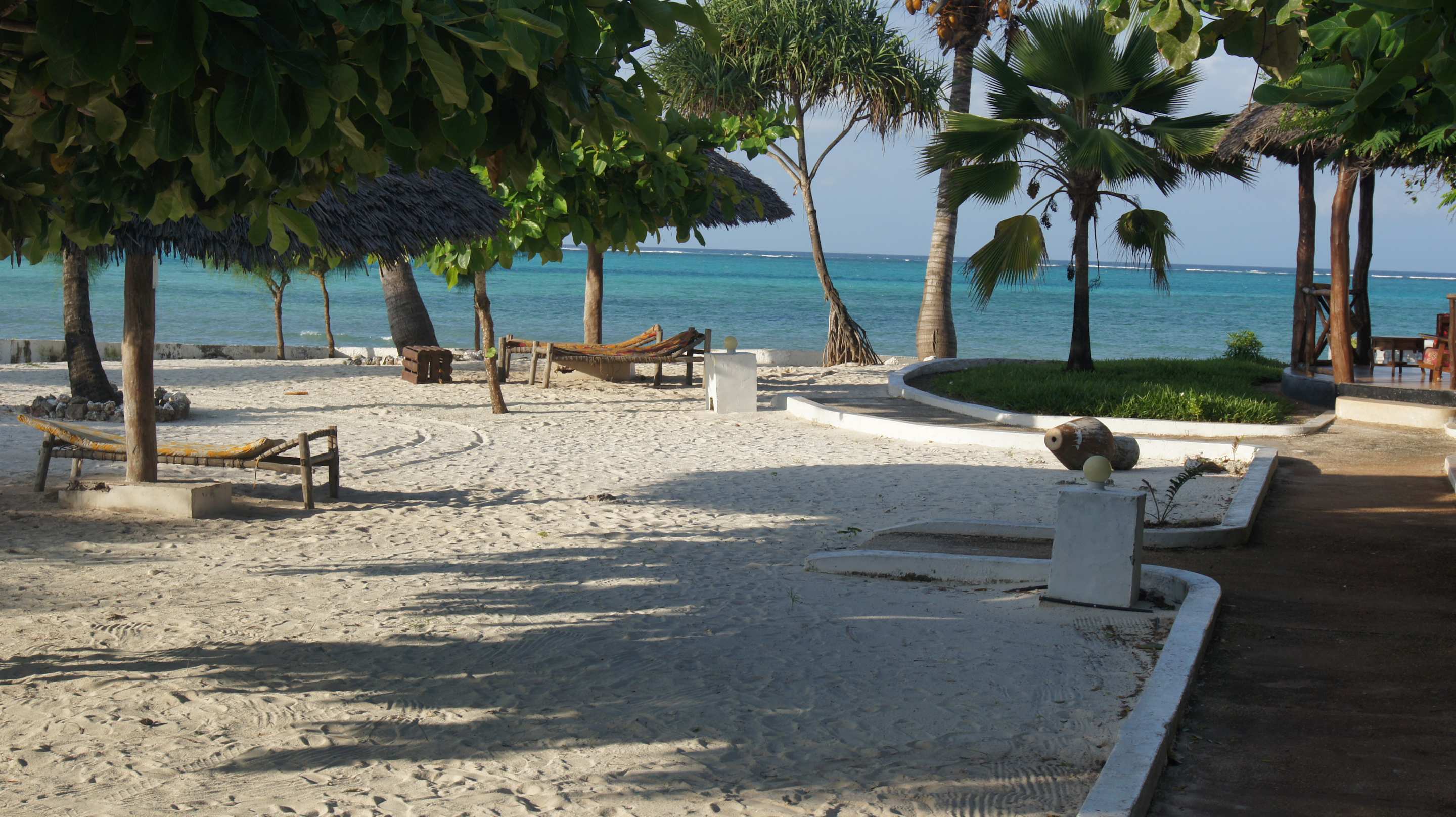 StrandLiegeflächen für Bungalownutzer. Gäste aus dem Haupthaus dürfen nur die Liegen rund um den Pool nutzen