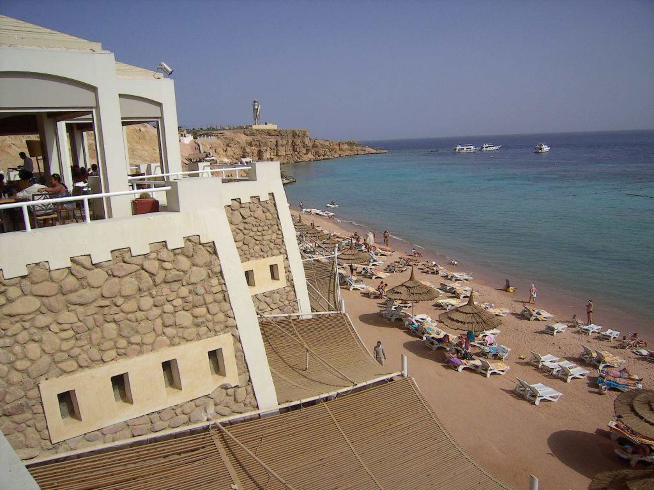 So blickt man vom "Grillrestaurant" auf den hoteleigenen Strand (linksseitig)