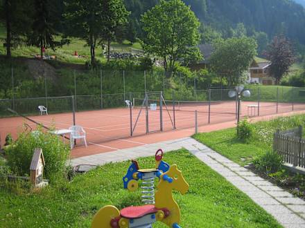 Von Terrasse auf Garten/Tennisplatz