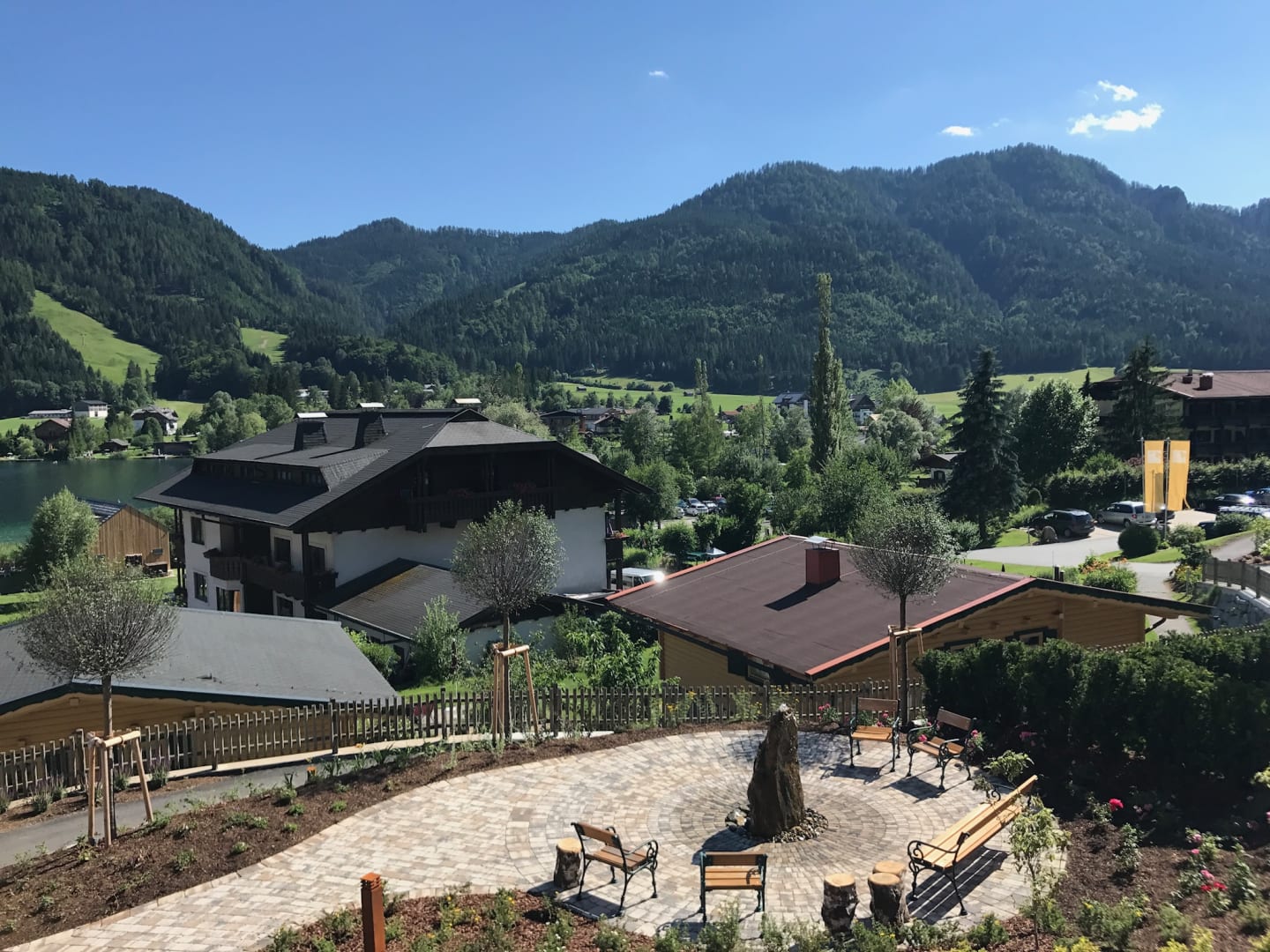 Von unserer Terrasse über den Dorfplatz.