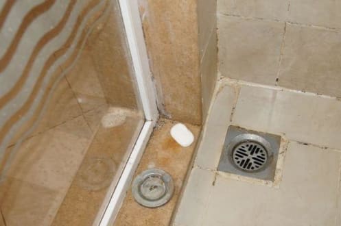 Tak wyglądał prysznic po umyciu przez obsługę - wziął dwa dolce i udawał że sprząta