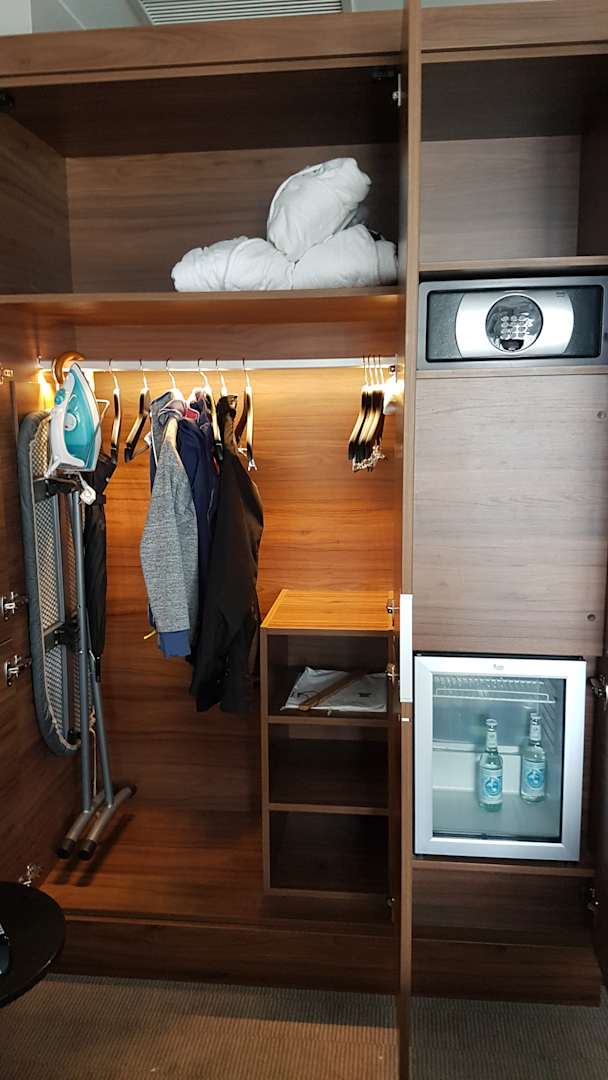 ZimmerKompletter (!) Schrank, einzige (!) Aufhängung (obwohl im Eingangsbereich mehr als ausreichend Platz für wenigstens ein paar Haken gewesen wäre)