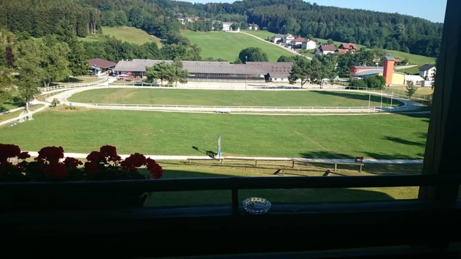 Ausblick vom Hotelzimmer auf die Reitanlage