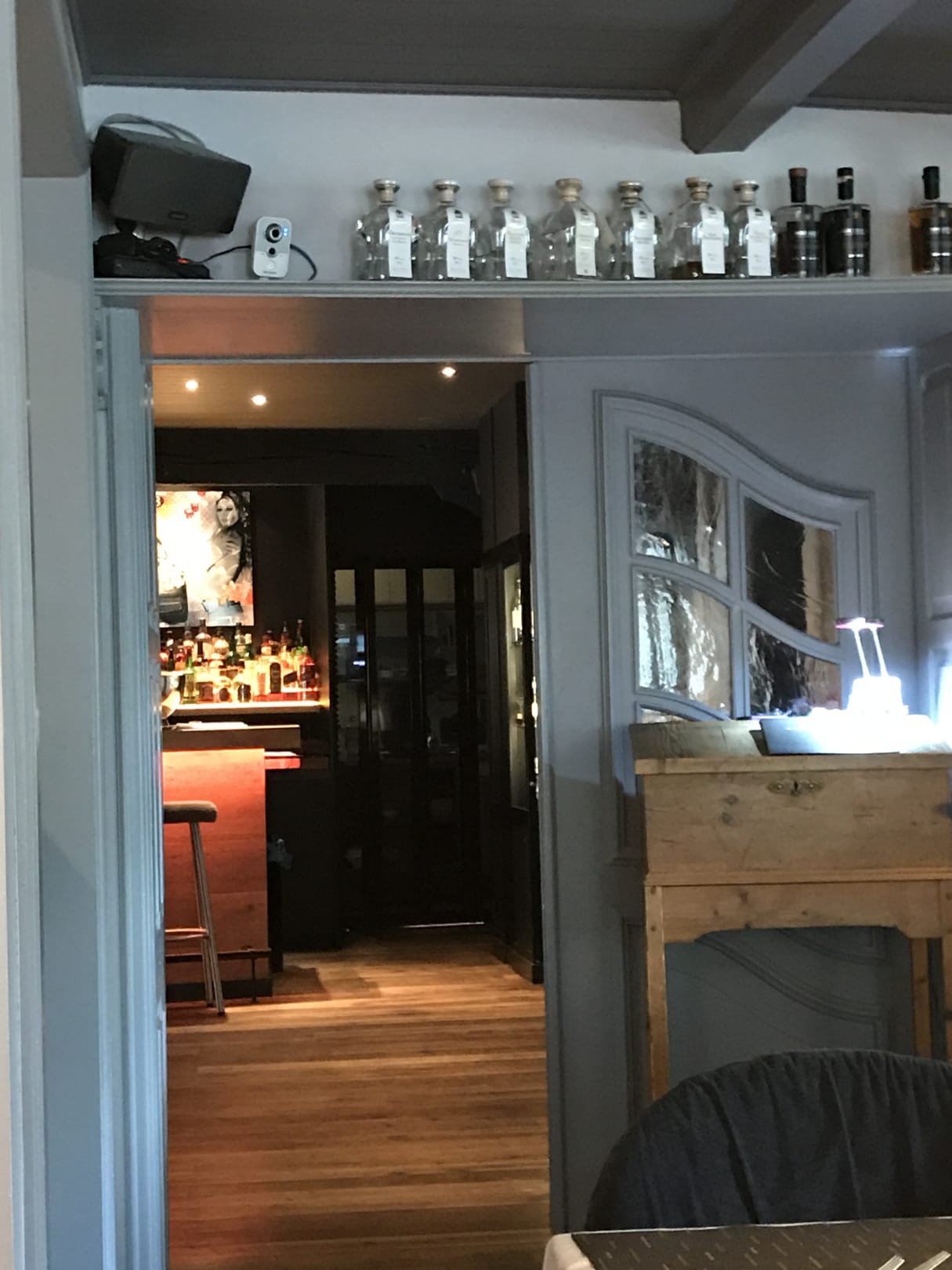 Blick vom Frühstickstisch Richtung Bar