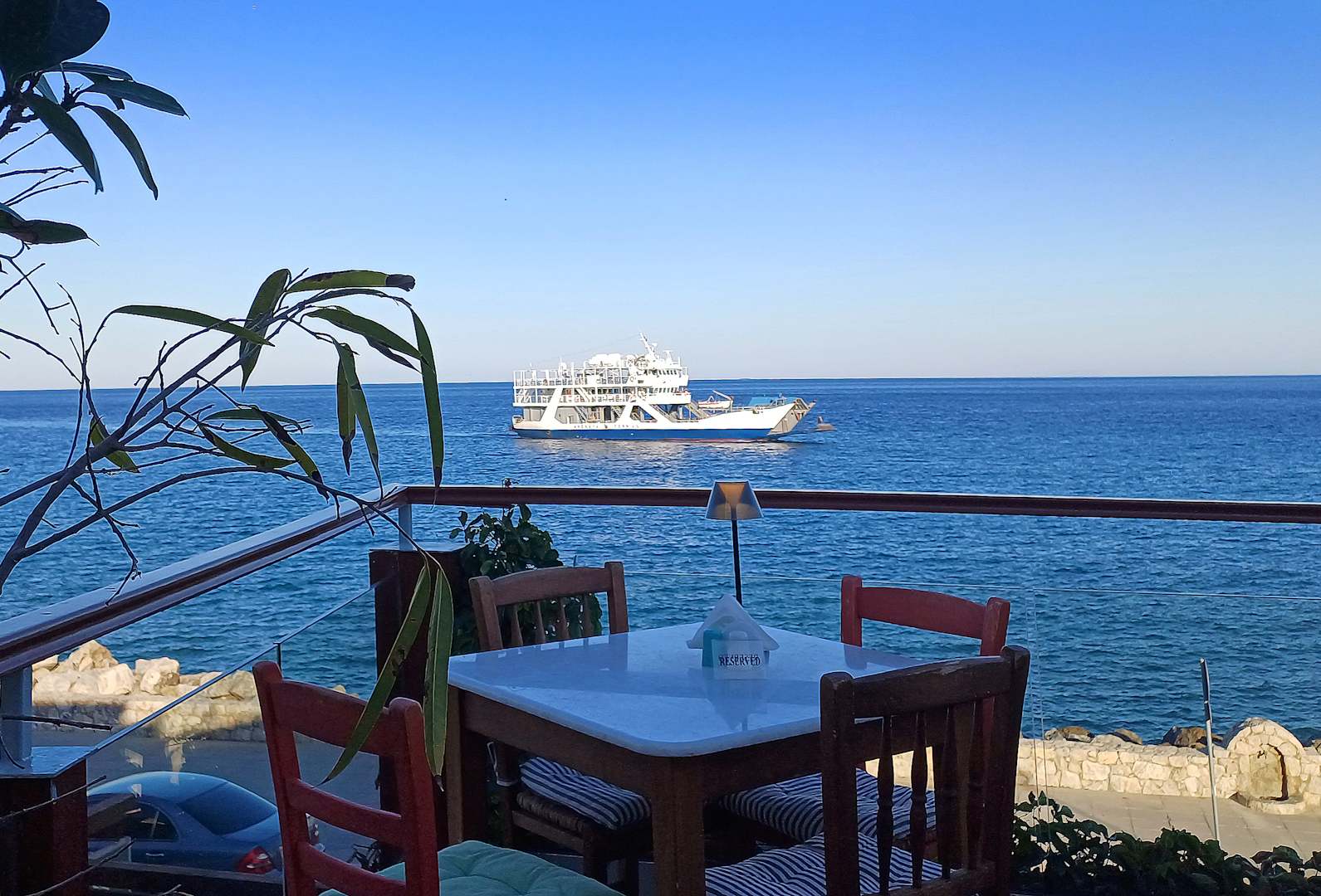 Die Fähre kommt am Abend an den Oststrand