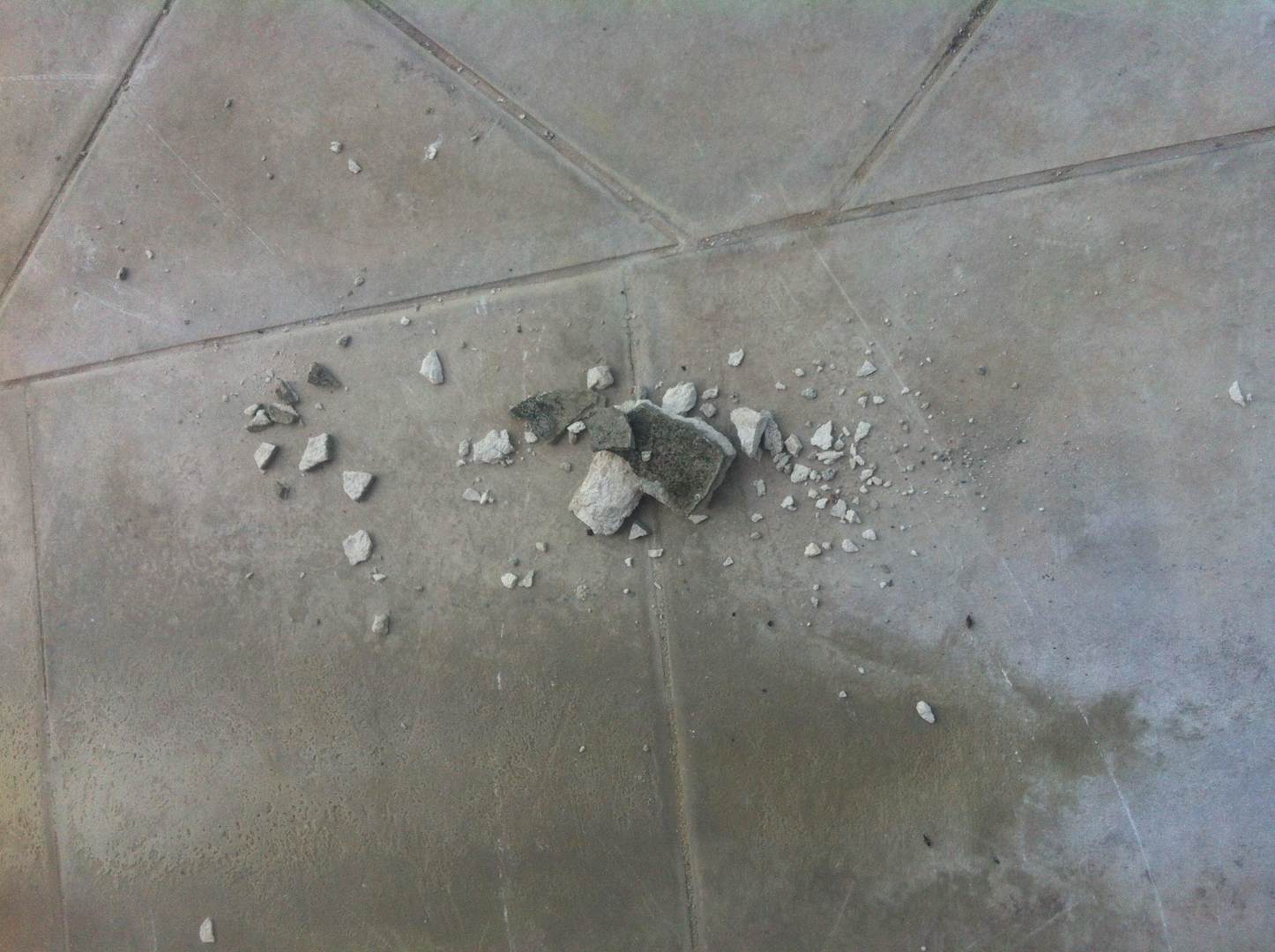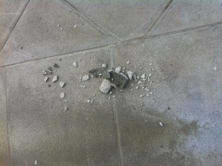 Boden des SonnendecksDiese Steine fallen auf Grund des maroden Zustands von den Unterseiten der Balkone nach unten auf das Sonnendeck!!!