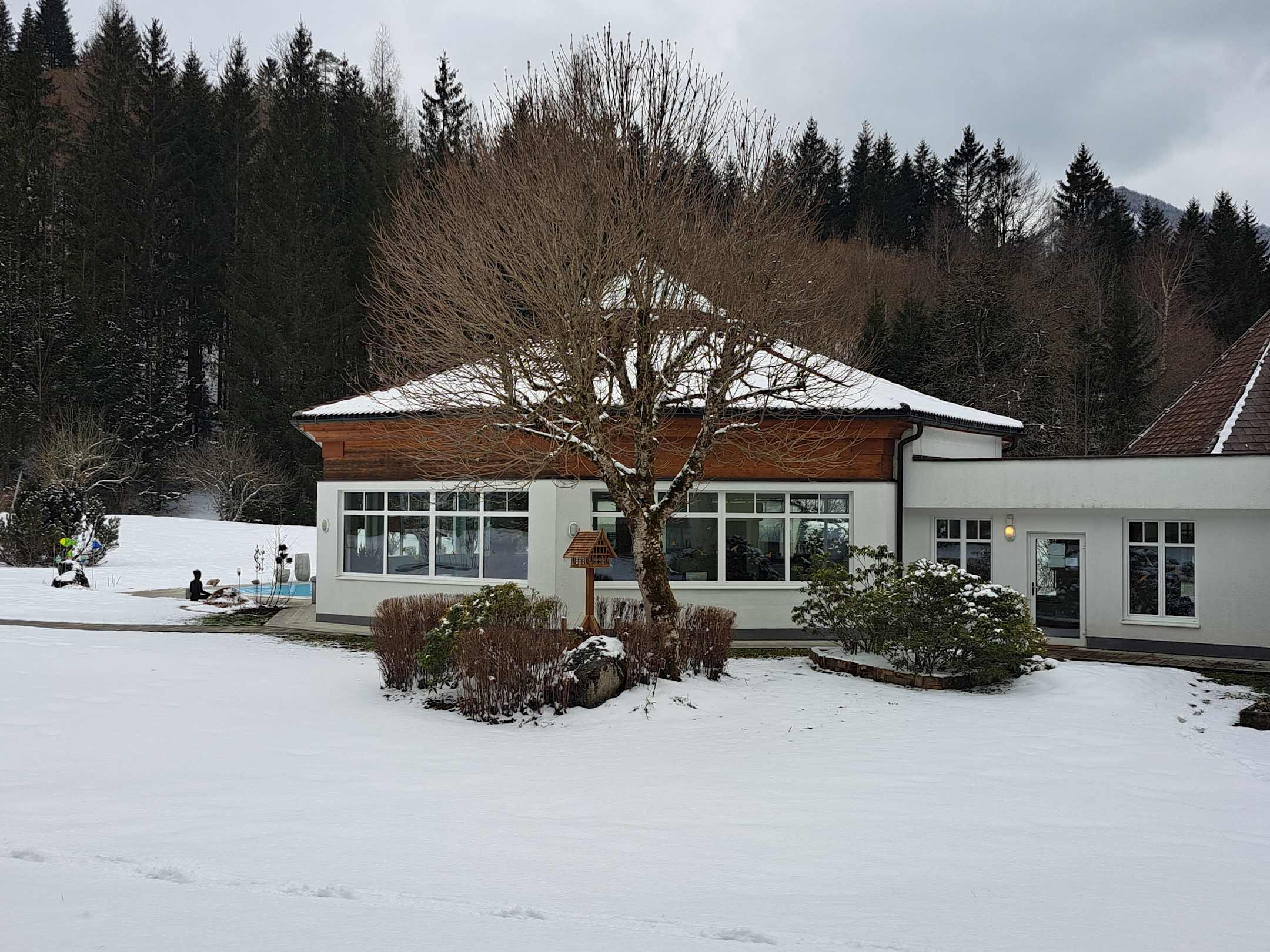 Blick vom Balkon zum Hallenbad
