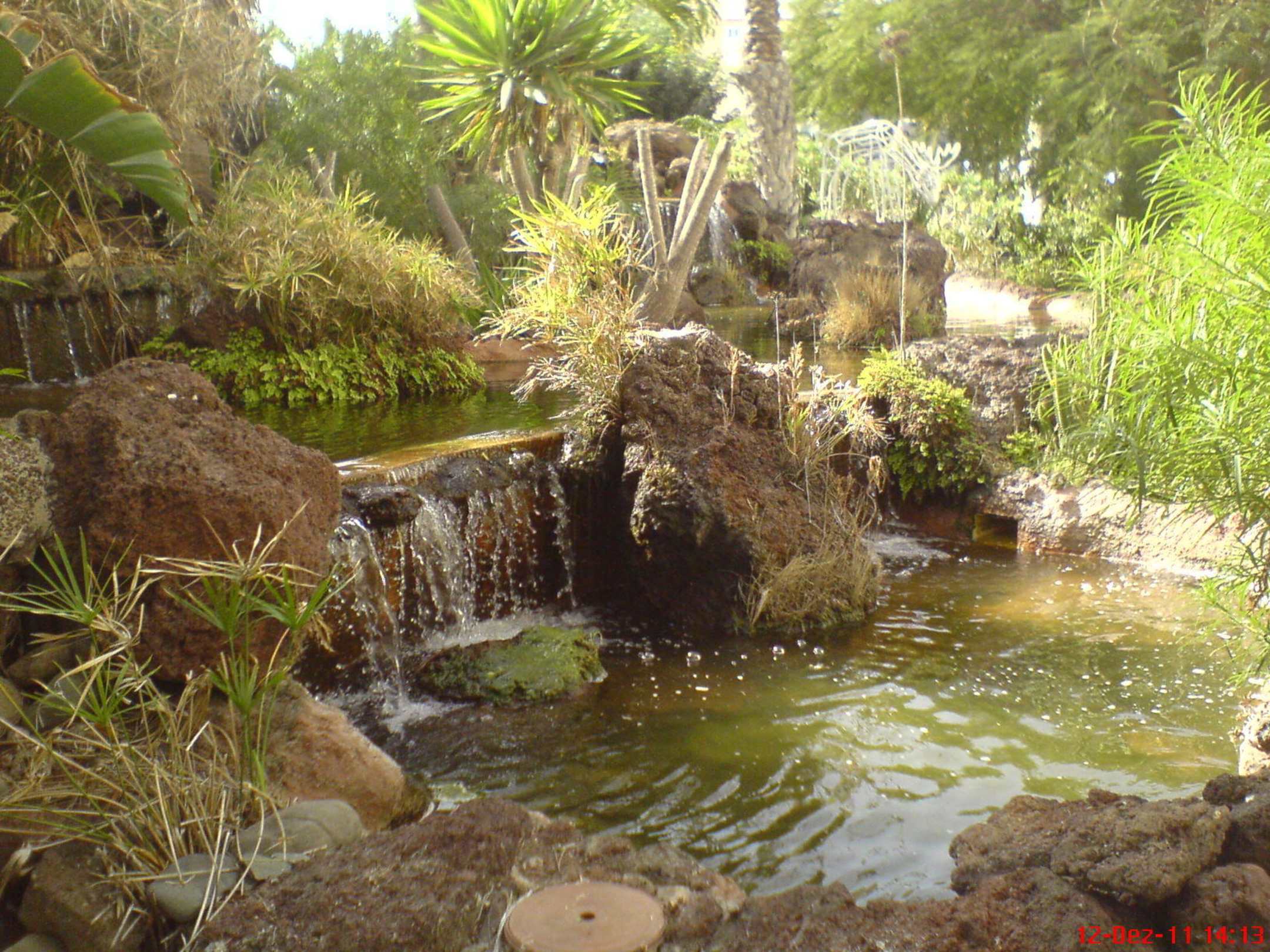 Schön gestalteter Garten mit Wasserspielen