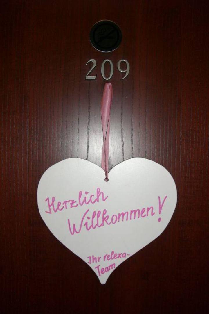 Willkommensschild an der Zimmertür