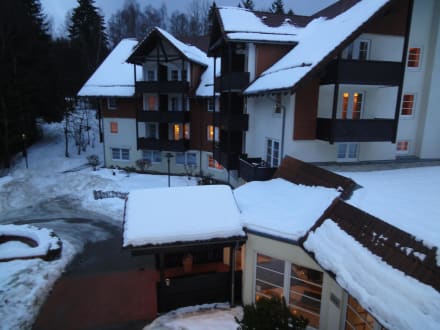 Blick vom Balkon auf den Eingangsbereich