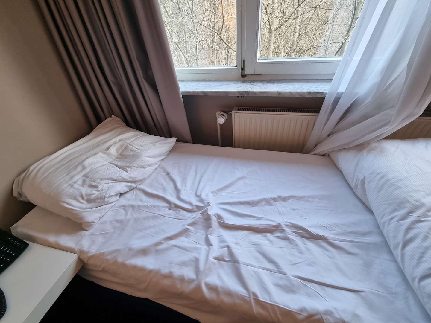 Einzelbett direkt an der Heizung angebracht