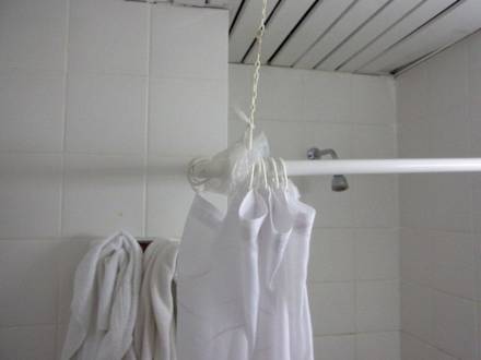 Unter anderem gewagte Duschstangenkonstruktion