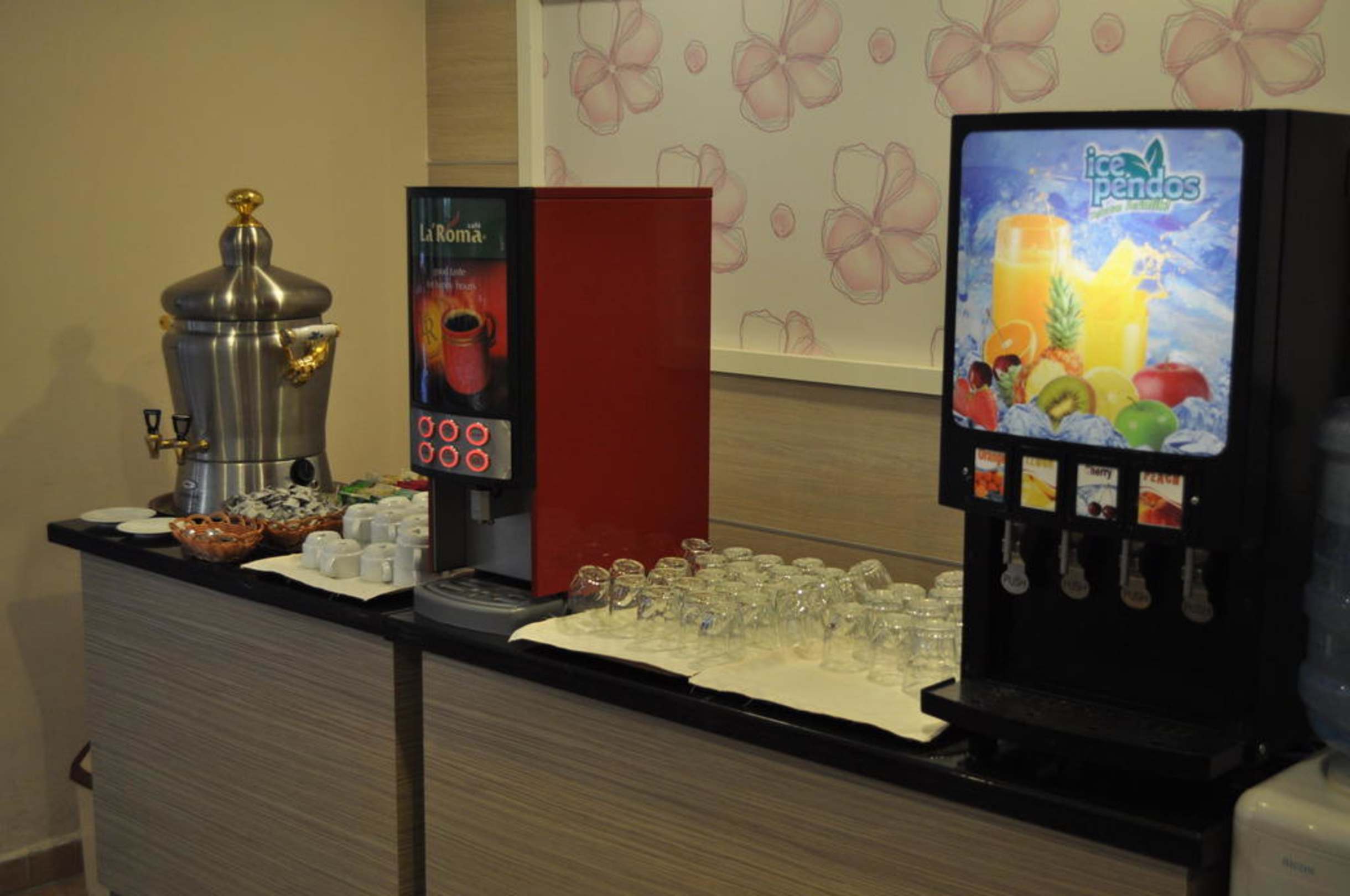 Coffee, tee, hot chocolate and four kinds of juices are ready for you. Furthermore you can get beer, white- and redwine + several other things. All included in the All inclusive offer.