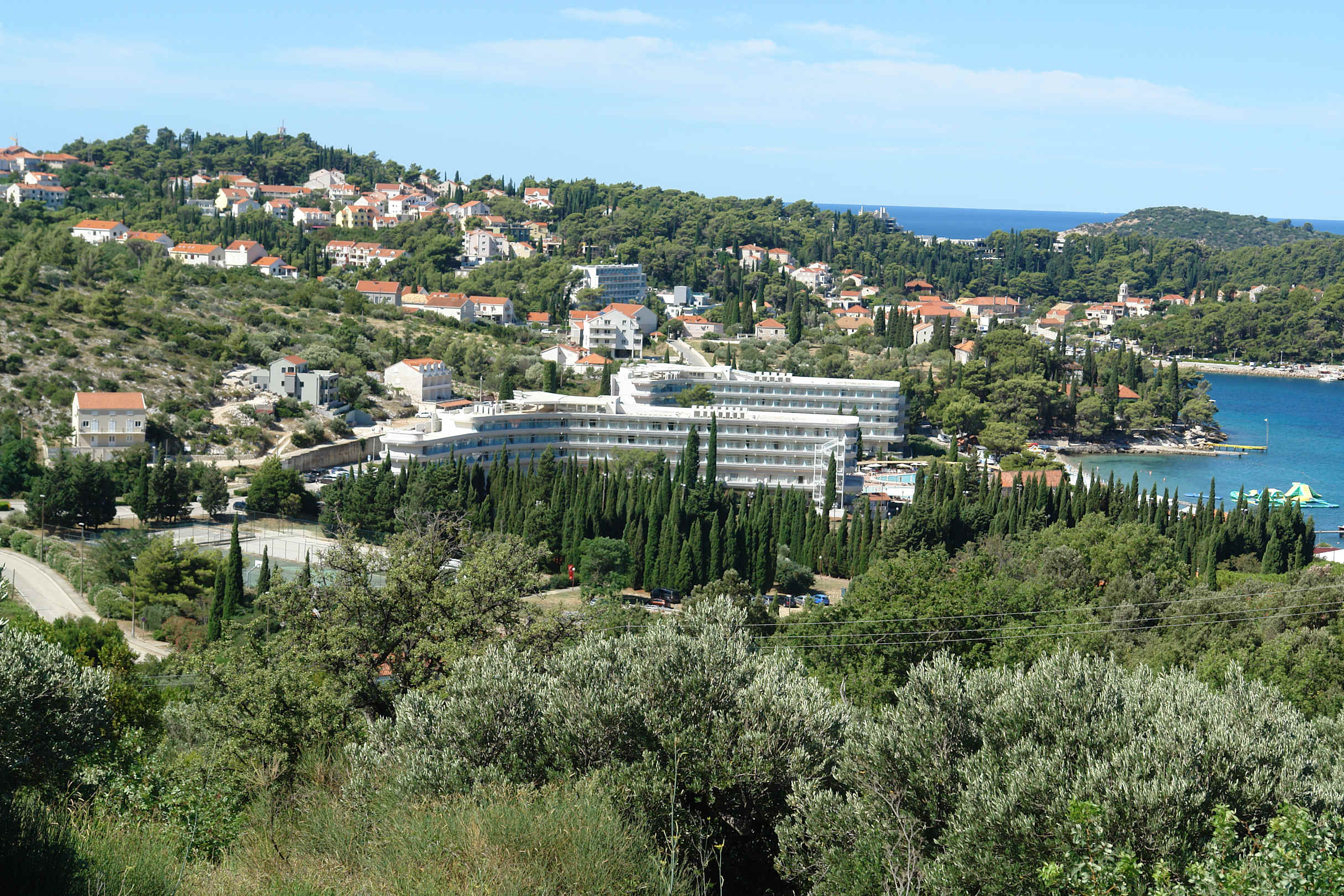 Blick auf das Hotel und die Bucht