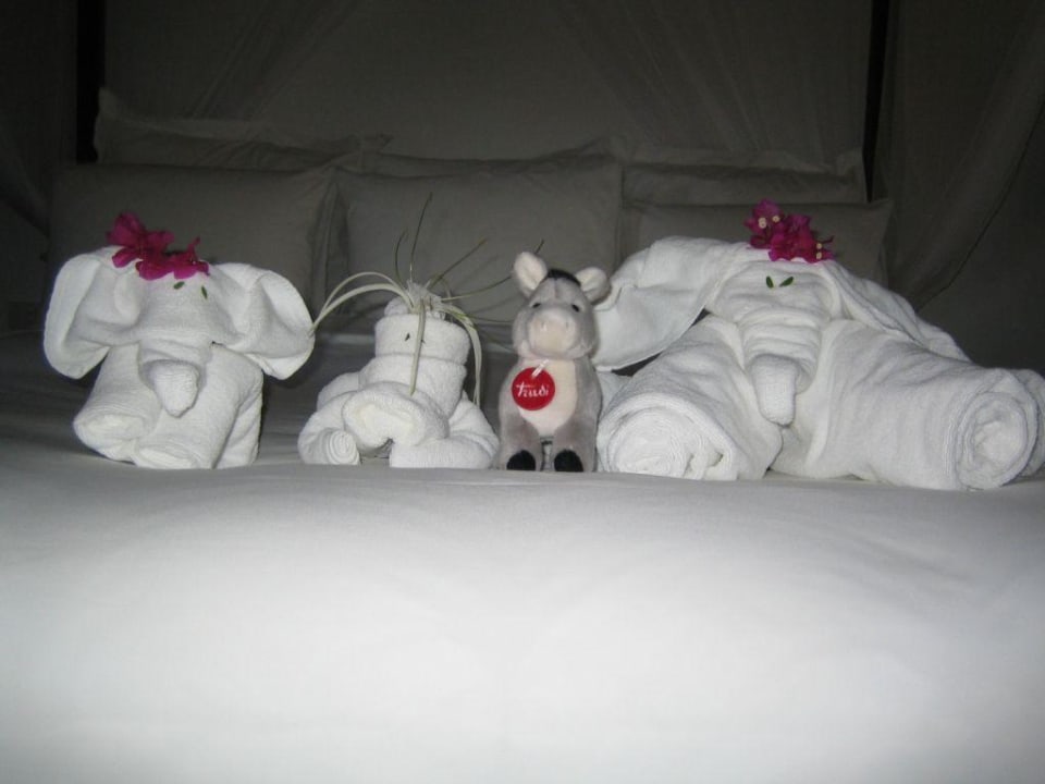 Handtuchtiere Jeden Tag neue Tiere aus Handtüchern auf dem Bett.