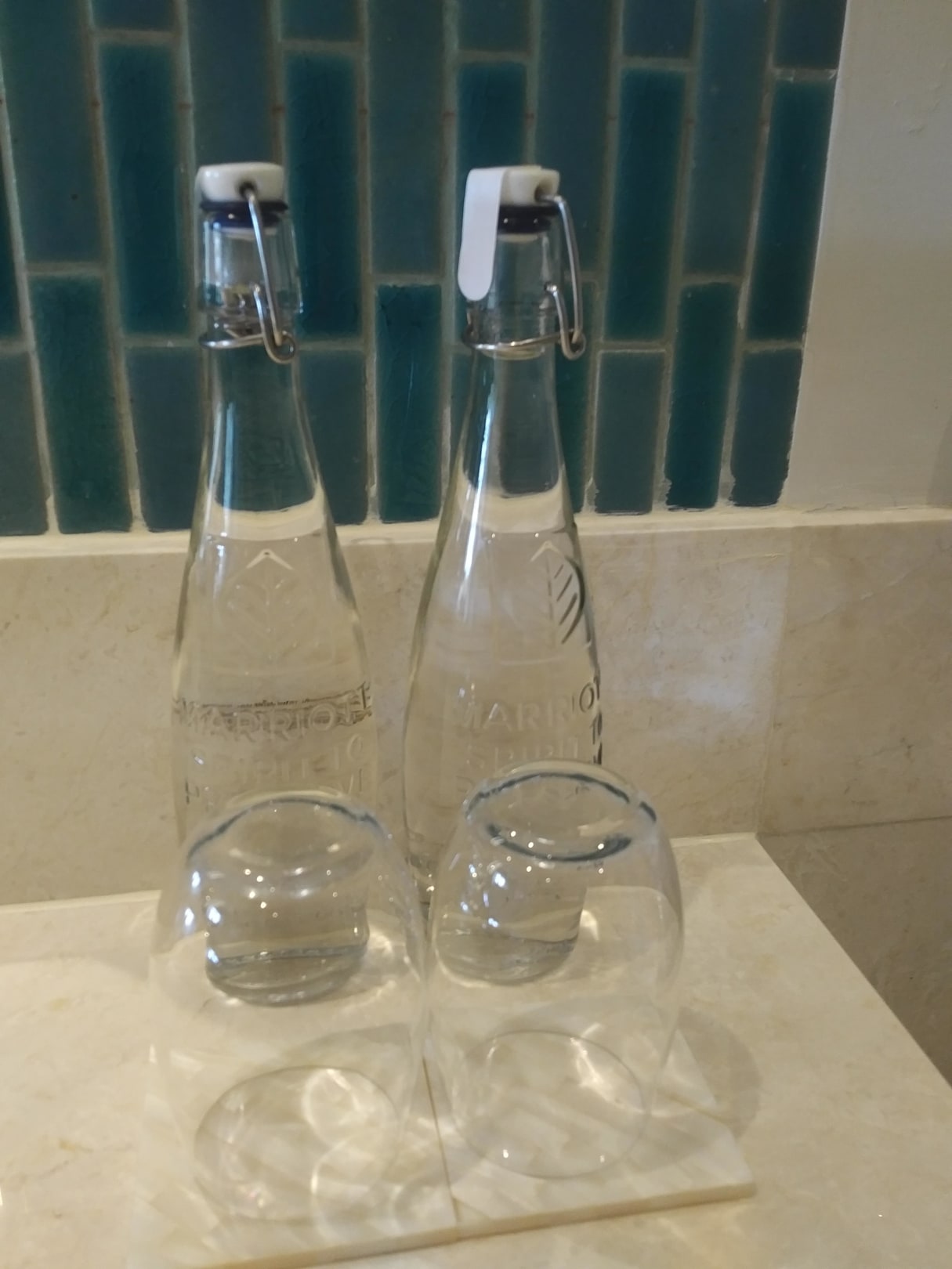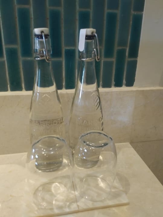 Besonder klasse - keine Plastikflaschen, sondern Glasflaschen mit Wasser.
