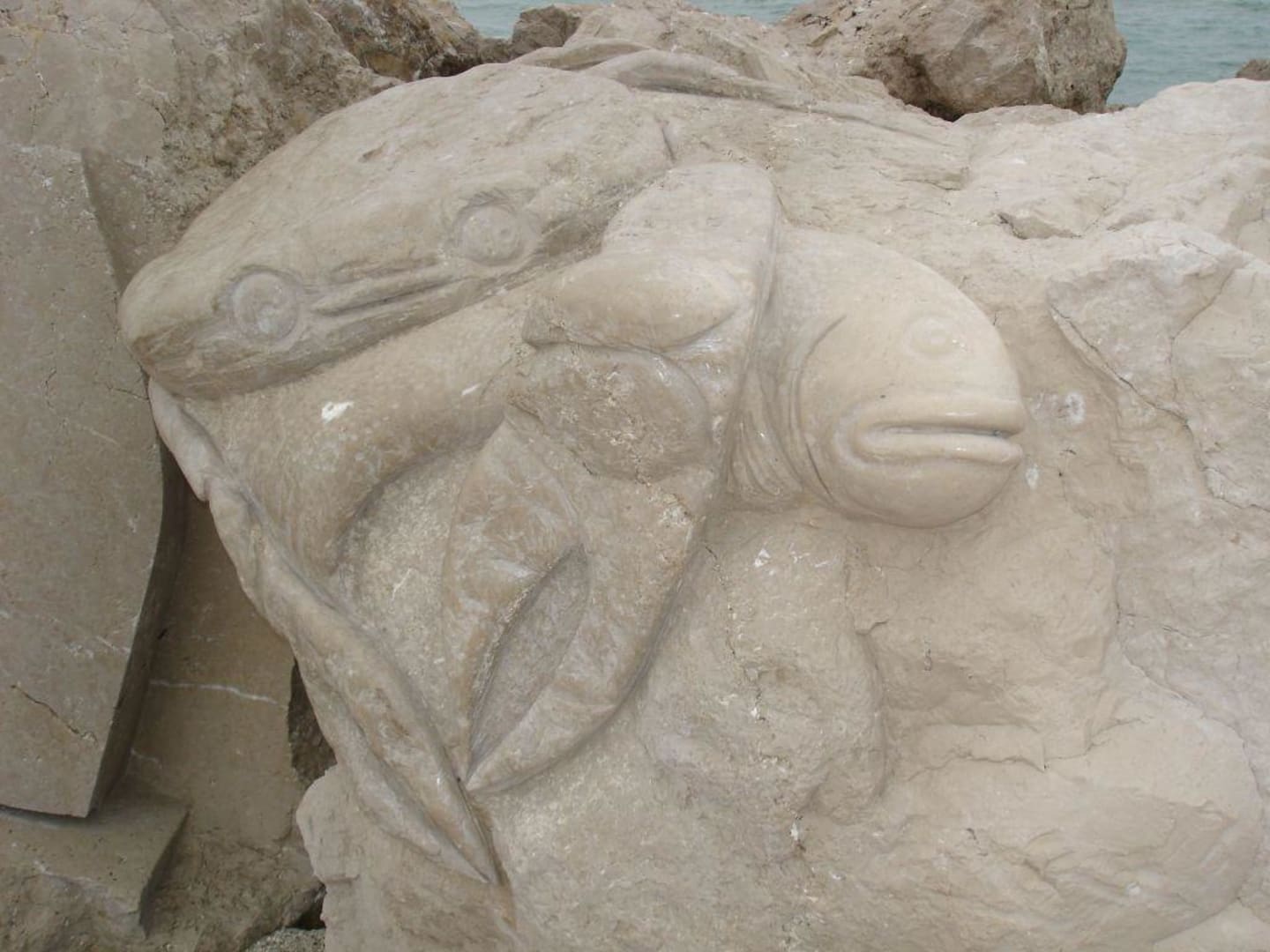 Figuren in Stein gemeiselt am Strandweg 3