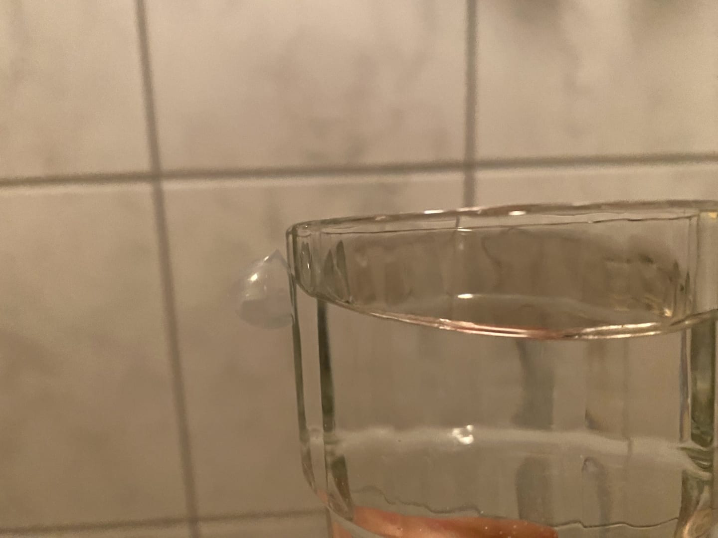 noch vom Zimmervorgäng. Eine Kontaktlinse am Zahnputzglas