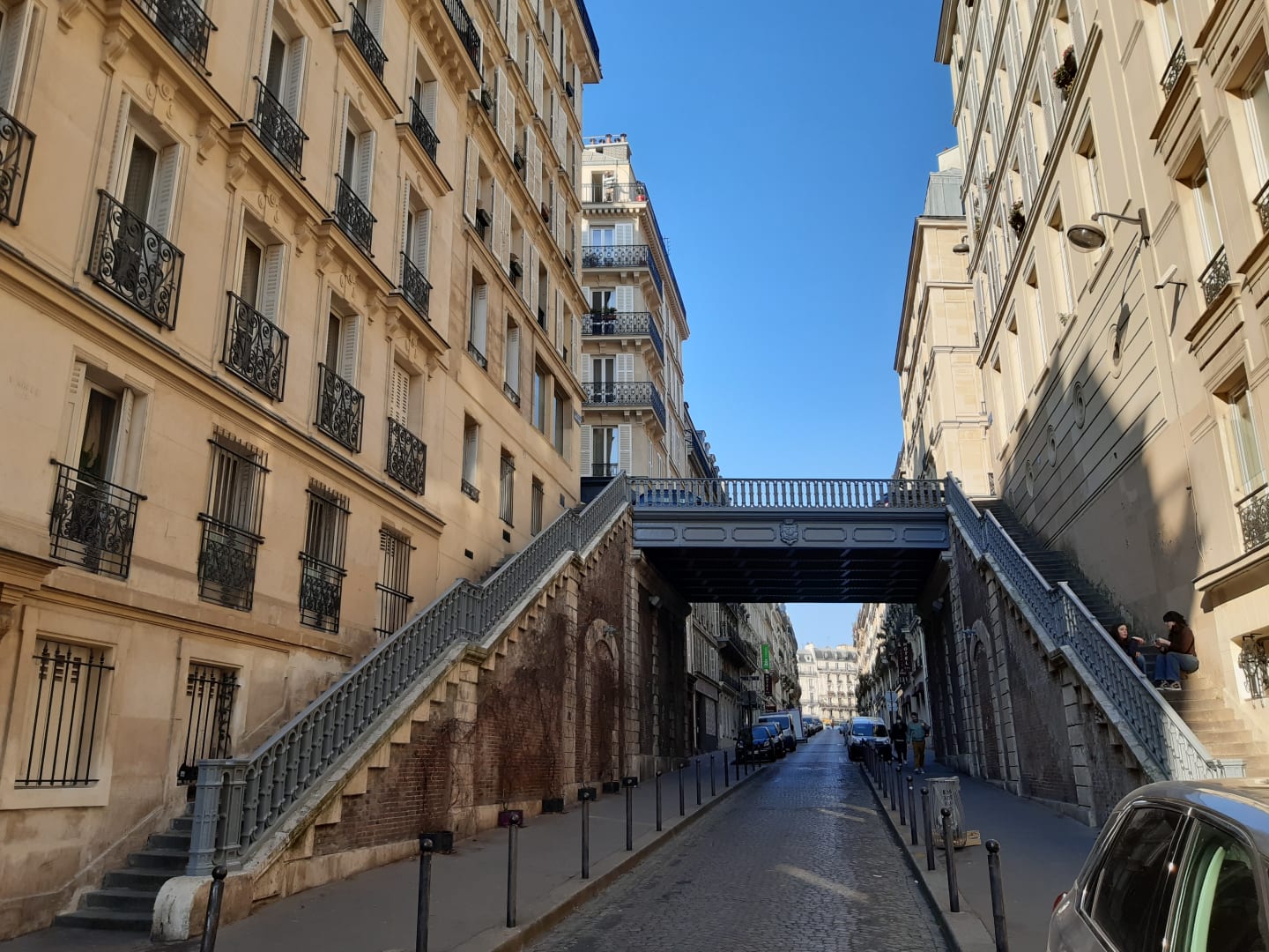 Die Rue Pierre Semard, Hotel hinter der Brücke links
