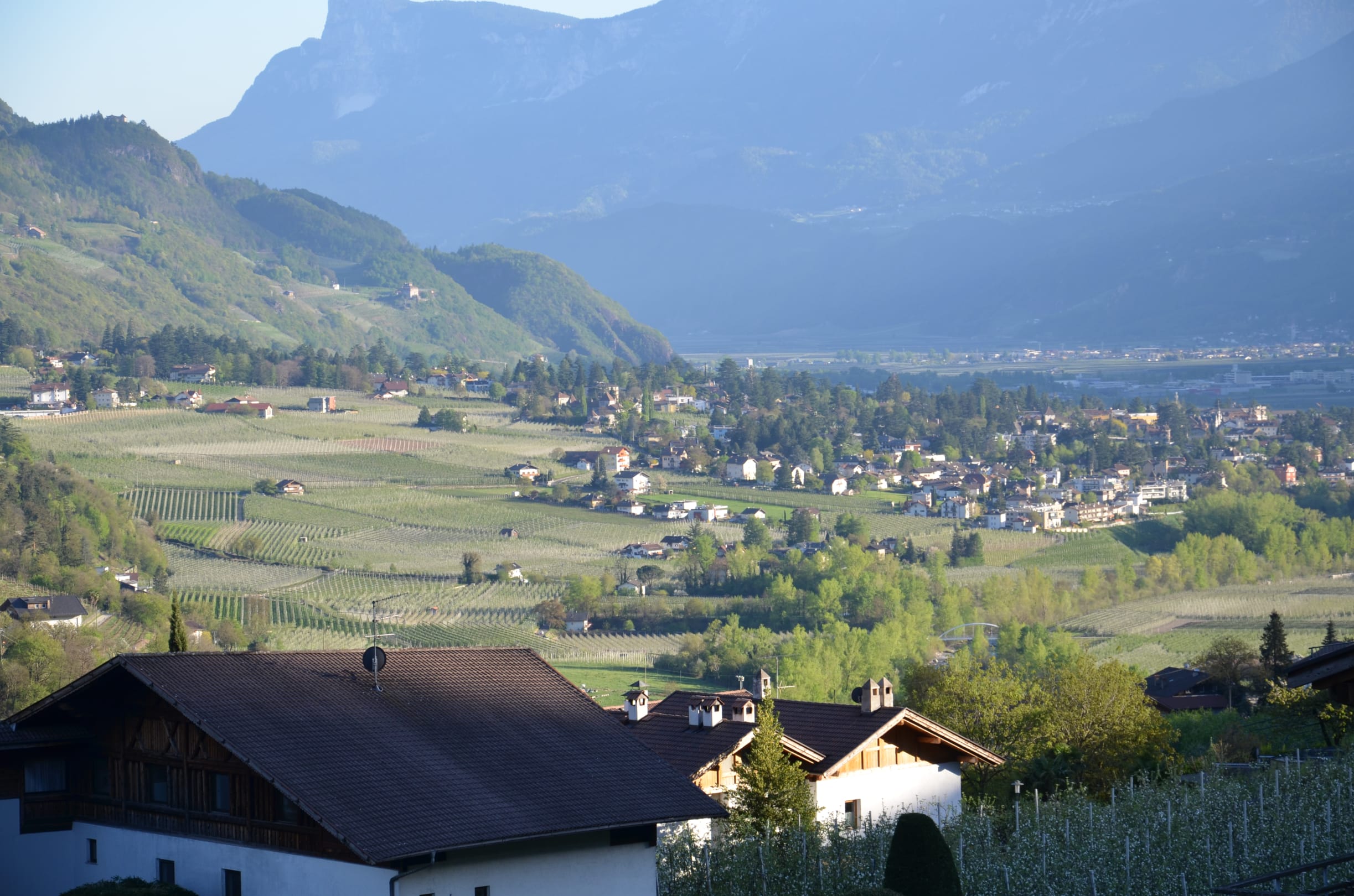 Blick vom Balkon ins Passeiertal und Etschtal