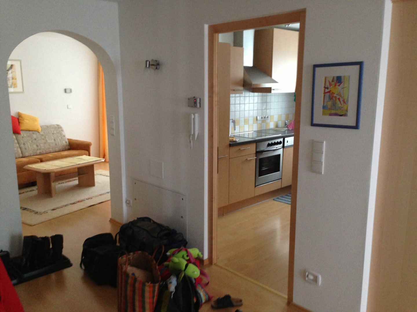 Blick vom Esszimmer auf Küche und Wohnzimmer