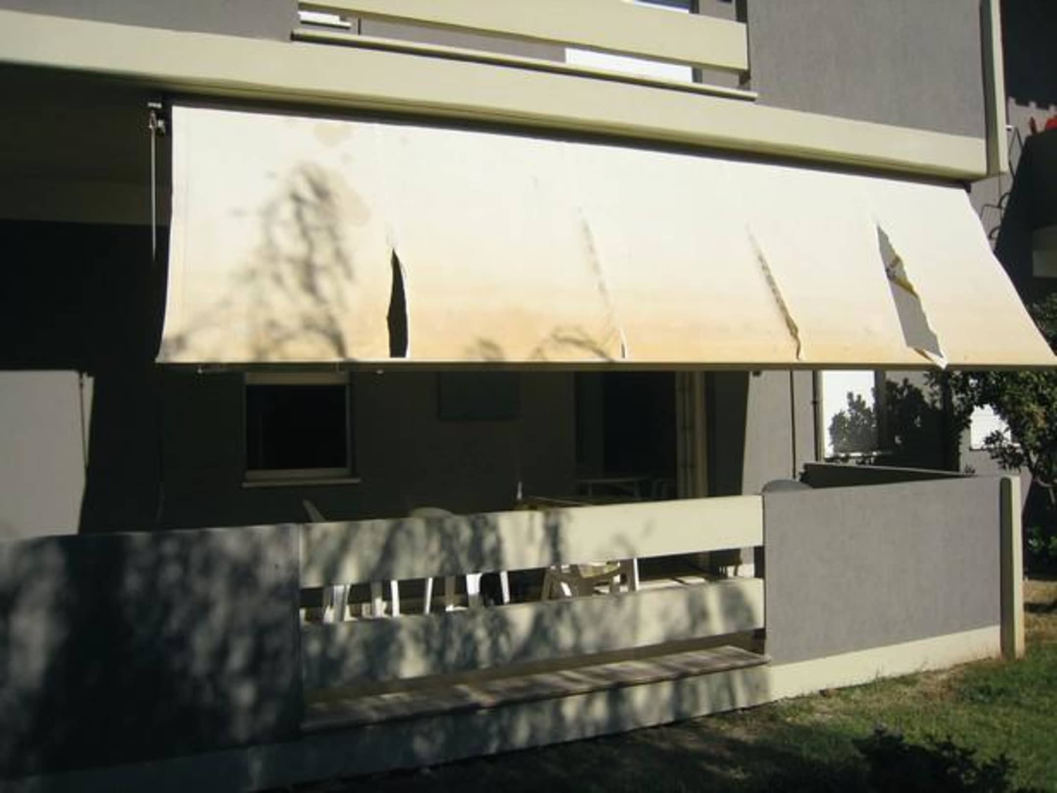 einegerissene Markise des Appartments "Green Marine"